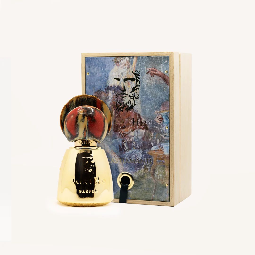 They are the places of “otium” and meditation, where the old Silenus, drunk, expresses with his music and his songs the amber notes of his ancient travels in the Mediterranean, echoing the eastern lands through the Sichuan pepper and the ylang ylang in a nostalgic marine accord.