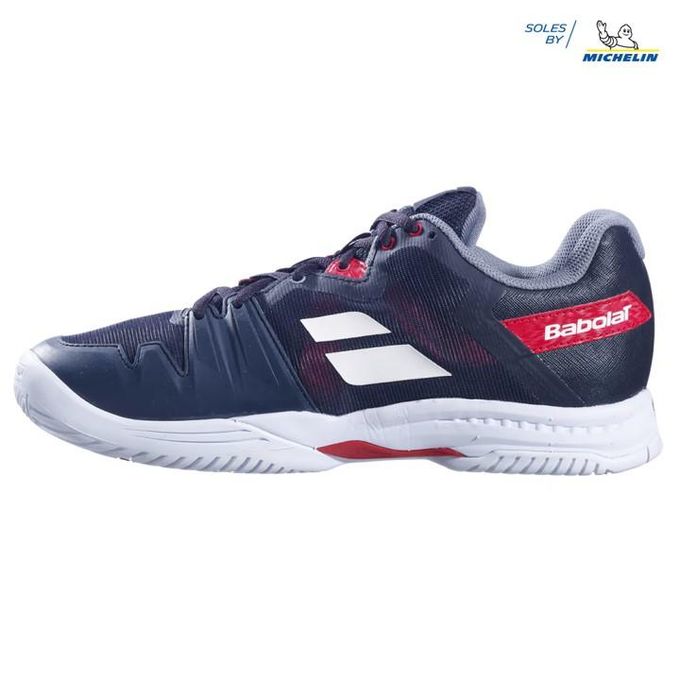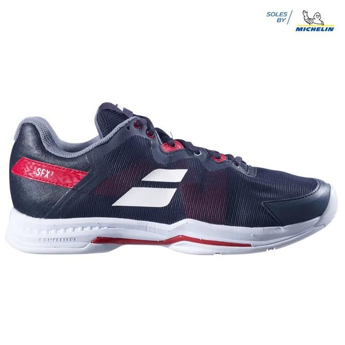 The wait is over! Babolat updates the popular SFX2 with a new upper design that's softer and more breathable than before thanks to an additional amount of mesh. Comfort is still the key storyline, as the SFX3 features one of the most advanced layered stock insoles on the market, along with the ever-plush Kompressor cushioning system that absorbs shock under foot from harsh landings. The Michelin rubber outsole continues to be one of the more durable materials on the market and will play great on a variety of surfaces. Players with wider feet who place a premium on comfort should take this model into serious consideration!