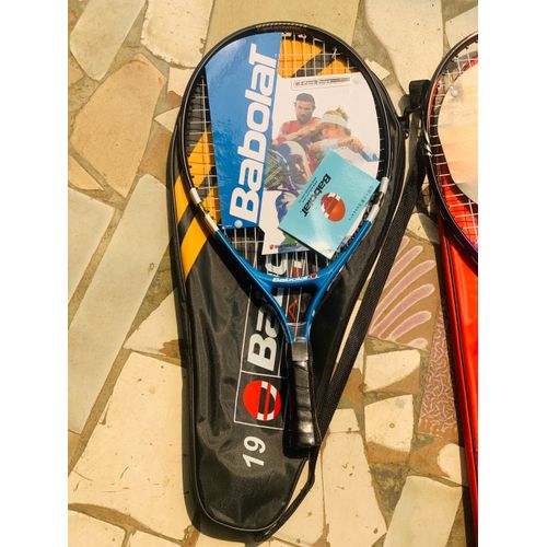 For professional and non professional athlete -For outdoor use -Light in weight A racket or racquet is a sports implement consisting of a handled frame with an open hoop across which a network of strings or catgut is stretched tightly. It is used for striking a ball or shuttlecock in games such as squash, tennis, racquetball, rackets, badminton and padel .