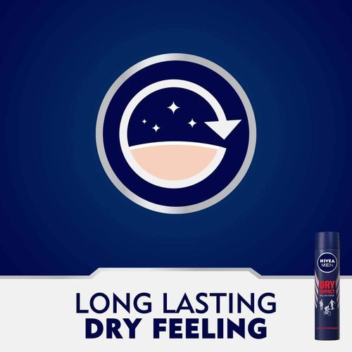 NIVEA MEN Dry Impact Anti-Perspirant offers you 72h reliable protection with unique skin comfort. The effective dual protect formula with 2 antibacterial actives keeps your armpits dry and prevents malodor. At the same time, this skin-friendly formula with 0% alcohol supports a comfortable skin feeling. Its skin tolerance has been dermatologically proven. The unique dry and comfortable skin feeling is accompanied by a virile fragrance with clean, inviting, and aromatic fresh blend of tangy citrus and herbal notes. Designed for men who want maximum protection with reassuring masculine fragrance.