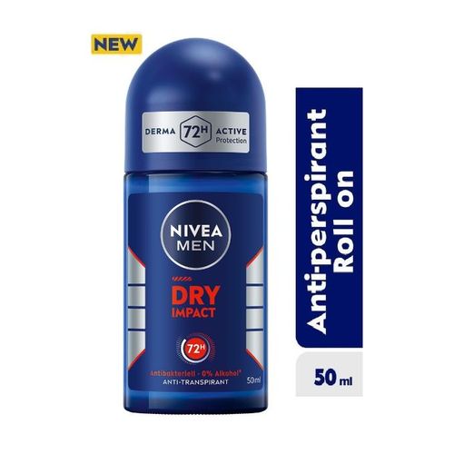 NIVEA MEN Dry Impact roll-on offers you 72-hour reliable protection with outstanding skin comfort. The effective dual protect formula with 2 antibacterial actives keeps your armpits dry and prevents odor. At the same time, this skin-friendly formula with 0% alcohol supports a comfortable skin feeling. Its skin tolerance has been dermatologically proven. The unique dry and comfortable skin feeling is accompanied by a virile fragrance with clean, inviting, and aromatic fresh blend of tangy citrus and herbal notes. Designed for men who want maximum protection with reassuring masculine fragrance and without any compromises