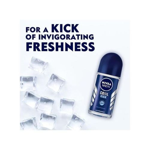 NIVEA MEN Cool Kick Anti-Perspirant Deodorant you an instant feeling of freshness while effectively protecting you from sweat and body odour for 48-hours. The formula with Cool-Care will leave you feeling fresh while protecting and caring for your skin no matter what your day has in store and provides dry freshness to keep you feeling clean for the rest of the day. The men's deodorant roll on is skin tolerance dermatologically approved and is completely alcohol-free.