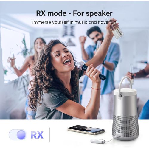 2 In 1 Bluetooth Transmitter Receiver: In TX mode, you can connect the device to a TV, airplane, and other devices without Bluetooth function, and then connect Bluetooth headphones to listen to music; in RX mode, you can turn non-Bluetooth stereo devices such as car audio, old speakers into Bluetooth devices, and then connect mobile phones, computers, etc. to play music; without the constraints of cables, move more freely without affecting audio playback. (Please make sure the correct mode is selected before use.)
