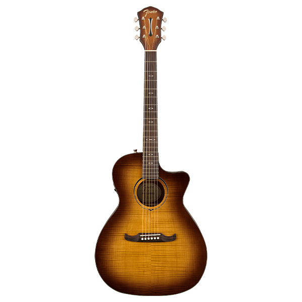 An instrument that sounds as good as it looks, the FA-345CE offers legendary Fender sound and performance in a single-cutaway body. Quality laminate construction, including lacewood back and sides and flame maple top with tortoiseshell binding, along with a modern Fender 3+3 headstock and Viking bridge create an easy-playing instrument that sounds great. The modern Fishman® electronics allowing you to take your sound to the stage with ease. Developing and experienced players alike will appreciate the mahogany neck that gives the guitar a lively tone while complementing the flame maple top.