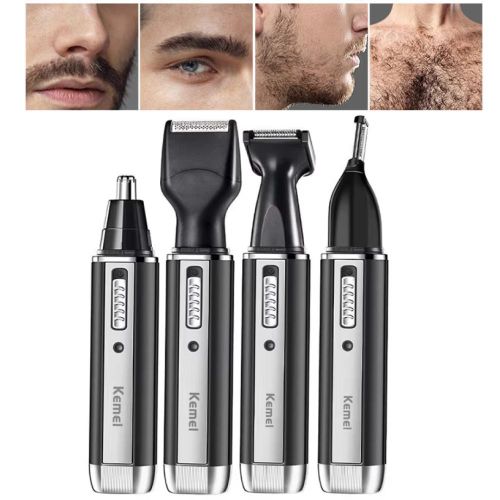 4-in-1 Grooming Kit – Includes nose hair trimmer, electric shaver, sideburn trimmer, and eyebrow razor for complete facial hair care.