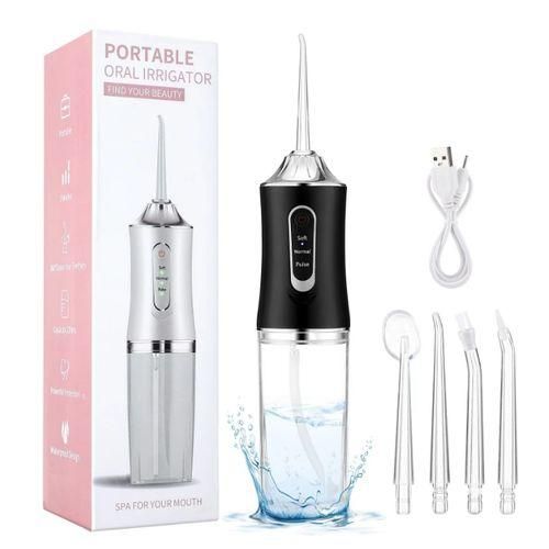 Specification:Product DescriptionProduct Name: 100% New Brand Adult Oral IrrigatorHousing material: 100% high quality ABSWater tank material: 100% high quality PCOutput: 3.7V/5WWater tank type:240ml large capacity detachable water tankPulse frequency: 1200 times/MinWater pressure range: 80-120psiBattery Type: 1000mAh Rechargeable Lithium BatteryCharging mode: Convenient Portable USB ChargingFully charged working time: 4 hours