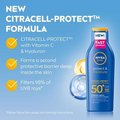 Nivea Sun body lotion SPF 50 is non-greasy and non-oily formula gets quickly absorbed into the skin and is water-resistant.