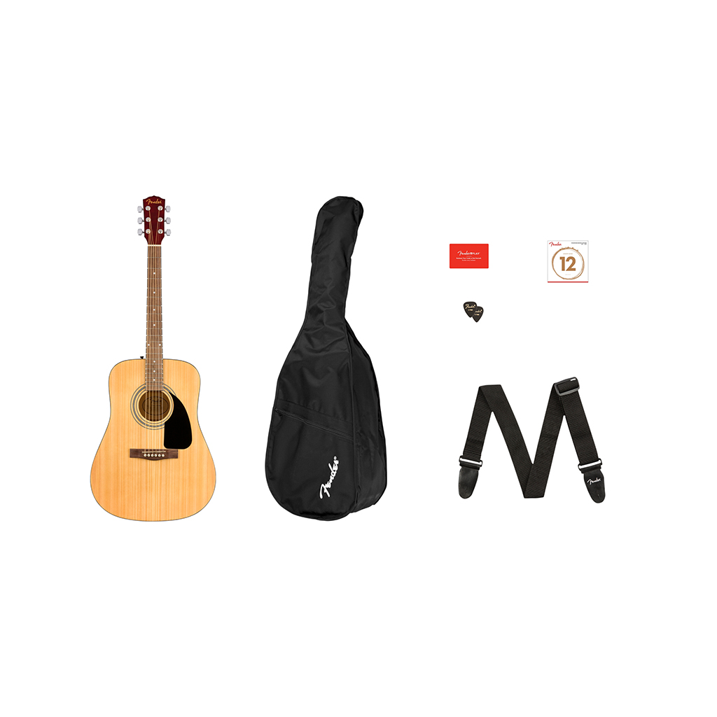 The Fender FA-115 Dreadnought Pack is an affordable and beginner-friendly acoustic guitar that offers a solid tone and easy playability. The guitar features a dreadnought body shape, natural finish, and walnut fingerboard. The pack includes a gig bag, accessories, and everything you need to start playing right away. This full-size guitar is perfect for learning, practice, or performance.