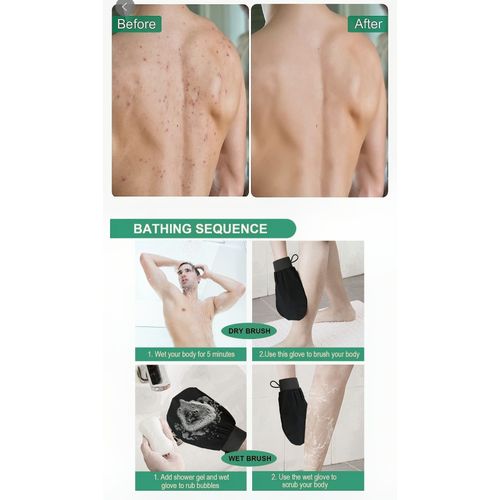 Features1.When bathing, first shower with warm water for a few minutes, then put the product on your hand, add appropriate amount of shower gel to wipe all parts of the body, and play the role of strong decontamination cleaning and massage.2. You can also let the body use foaming and soaking the body lotion, soften the body skin first, then wash the foam and then use this bathing glove to rub the body. The effect will be better, and the strips will fall off and wash. After the whole body is relaxed!3.The glove should only be used on wet skin,not under a stream of water.4.When gloves are first used, they shrink a little, and then they don't.Noteplease use clean, hang dry in a cool ventilated place. Can prolong the service life.