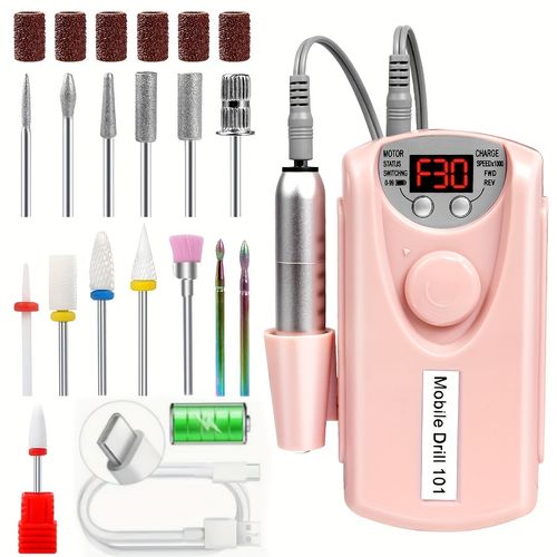 A: Of course! The core design philosophy of this product is portability and ease of use. The device is extremely compact and sleek, and we have specially included a portable hook and belt clip for your convenience. Whether you're a professional nail technician providing on-site services or someone who enjoys DIY nail art at home, you can easily attach it to your waist or bag and use it anytime, anywhere. With a clear LED display, you can view the speed and remaining battery life in real-time, making operation intuitive and convenient.