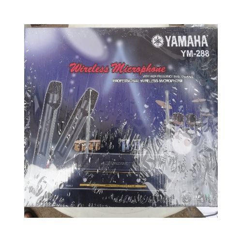 The Yamaha wireless microphone system YM288 is a wireless microphone with VHF frequency and distance range of 50 meters foot range. Ideal for Teaching, Preaching, Musical concerts and other programs. Supplied with a reciever, two wireless microphones, two 9V batteries and cable. Portable wireless microphone system with 50 meters distance range. It comes with the battery and cable The Yamaha wireless microphone system YM288 is a wireless microphone with VHF frequency and distance range of 50 meters foot range. Ideal for Teaching, Preaching, Musical concerts and other programs. Supplied with a reciever, two wireless microphones, two 9V batteries and cable. Portable wireless microphone system with 50 meters distance range. It comes with the battery and cable The Yamaha wireless microphone system YM288 is a wireless microphone with VHF frequency and distance range of 50 meters foot range. Ideal for Teaching, Preaching, Musical concerts and other programs. Supplied with a reciever, two wireless microphones, two 9V batteries and cable. Portable wireless microphone system with 50 meters distance range. It comes with the battery and cablE