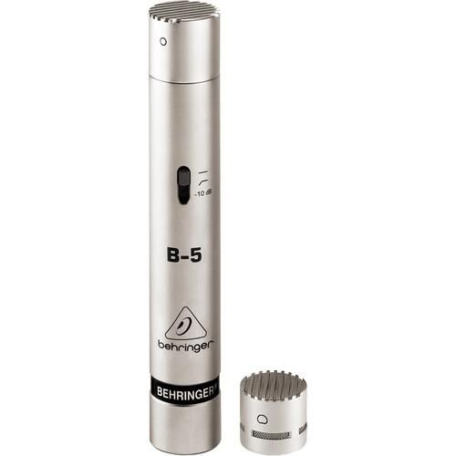 Ideal for home studios, the B-5 from Behringer is a small-diaphragm condenser microphone with interchangeable cardioid and omnidirectional capsules for maximum versatility. Sporting a switchable low-cut filter and -10 dB pad, the B-5 can easily handle a wide range of sources, from drum overheads and guitars to ensembles and choirs.