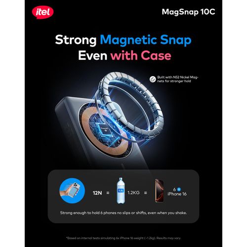 0 reviews for itel PowerEasy 1 MagSnap 10C A1820 Dual Wireless Fast Charger 22.5W + 15W 10000mah 12N Strong Magnetic Hold Built-In Cable & Kickstand Power AI Chip