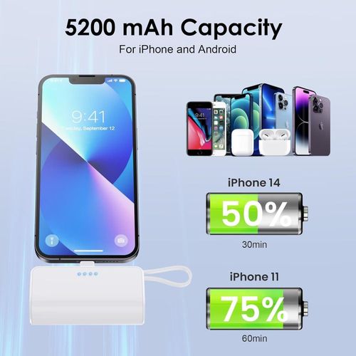 0 reviews for Mini Portable Charger Power Bank,(2025 Upgraded) 5000mAh PD Battery Pack Built-in USB C Cable (White