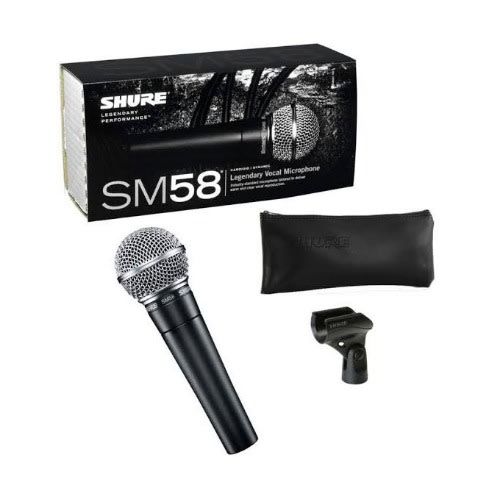 The legendary Shure SM58 vocal microphone is designed for professional vocal use in live performance, sound reinforcement, and studio recording. Its tailored vocal response for sound is a world standard for singing or speech. A highly effective, built-in spherical filter minimizes wind and breath "pop" noise. A unidirectional (cardioid) pickup pattern isolates the main sound source while minimizing unwanted background noise. Rugged construction, a proven shock-mount system, and a steel mesh grille ensure that even with rough handling, the SM58 will perform consistently, outdoors or indoors.