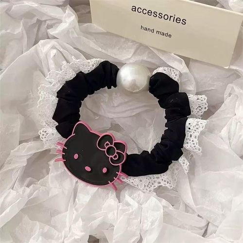 This black and pink Hello Kitty hair tie is a perfect blend of cute and elegant. It features a large, shiny pearl at the center that adds a touch of sophistication, while the delicate white lace trim around it gives a soft and charming look. Made to be comfortable and durable, this hair tie is ideal for everyday use or special occasions. It’s a great accessory to brighten up any hairstyle, whether you’re going for a casual or dressy style. Add a playful yet classy touch to your look with this lovely Hello Kitty hair tie!