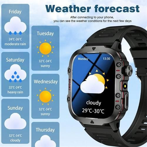 Militarys Standard Tested: This men's militarys-grade smartwatch features a wear-resistant glass screen and an aircraft-grade alloy case, offering drop and corrosion resistance, making it the toughest and most durable watch on the market. It has successfully passed 12 militarys tests, including resistance to extreme temperatures, low pressure, and high altitudes, as well as resistance to dust, salt spray, and liquid contamination. Our men's smartwatch ensures peace of mind in all kinds of harsh conditions. [AI Voice Assistant and Make/Receive Calls] This men's Android smartwatch supports making and receiving calls and even playing music. After connecting the watch to your phone via Bluetooth, simply give a voice command and the voice assistant will do the rest.