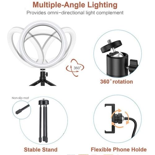 The ring light's flexible design takes your creativity to new heights. It can be rotated in multiple directions (horizontal, vertical, high angle, low angle), enabling you to find the perfect lighting angle for your shot. This flexibility means no matter what type of content you're creating, you'll always have the optimal lighting to bring out your best features and enhance the overall visual appeal of your work.