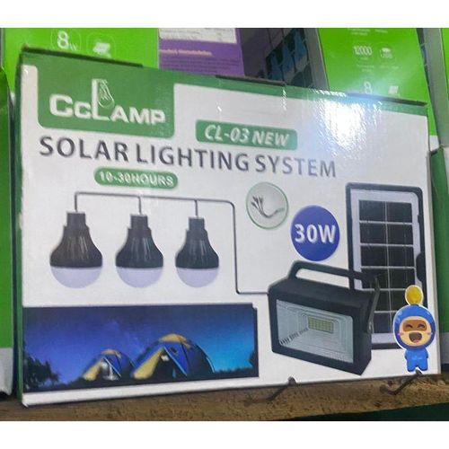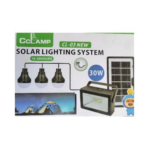Light up your home, shop, or camping site with the CcLamp CL-03 New 30W Solar Lighting System. Designed for energy efficiency and long-lasting brightness, this compact system includes three powerful LED bulbs, a durable solar panel, and a 30W rechargeable floodlight. Whether you're off-grid or need reliable backup lighting, the CL-03 is your go-to solution. Easy to install and eco-friendly, it's perfect for outdoor adventures, emergency lighting, and daily use.