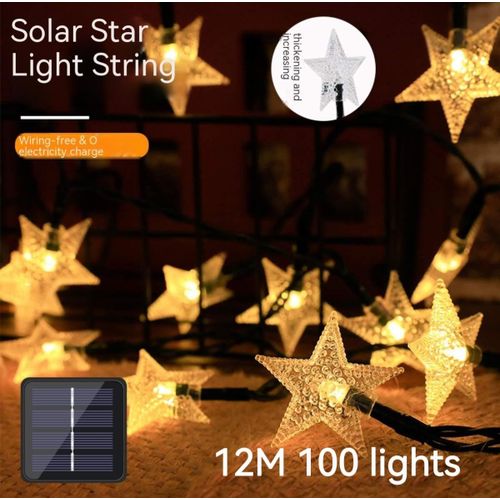 Star-shaped LED solar outdoor camping atmosphere Christmas lights, 12 meters, 100 lights, 8 functions (steady wave continuous flash slow flash on/off)