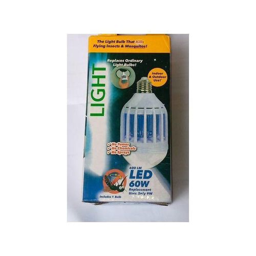 It attracts and kills flying insects and mosquitoes using a built-in blue UV light and an electrical grid.