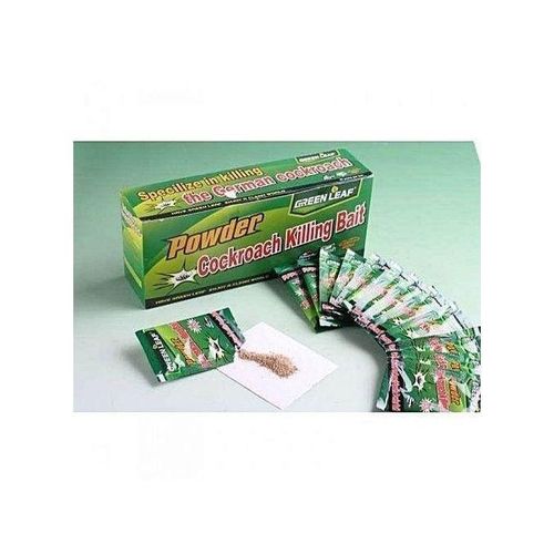 Description Effectiveness 1. Strongly effective in killing cockroach and its eggs: green leaf powder cockroach killing bait can kill a large amount of cockroaches directly. It also can impede the eggs from hatching, which leads to their abnormal death and thus achieves a unique effect of cockroach eradication 2. Sanitary and environment-friendly: no chemical residues, non-polluting, no irritant odor Directions for use 1. Open the small plastic bag and pour the powder bait where cockroaches are frequently observed or tend to hide. It can be poured in dark places, around inlets of sewer, by cupboards or refrigerators, under sinks, near kitchen ranges and in drawers, wardrobes or hallways 2. Each bag is better used for 3 to 5 spots. In order to ensure the effectiveness, once opened, it should be used up at one time. 3. It is suggested to replace the powder every seven days. Cockroaches will be eradicated after you use the powder for two to four times in succession 4. The more the powder cockroach killing bait is placed, the better the effect will be. If a place is heavily-infested by cockroaches, please apply the powder to the whole area.