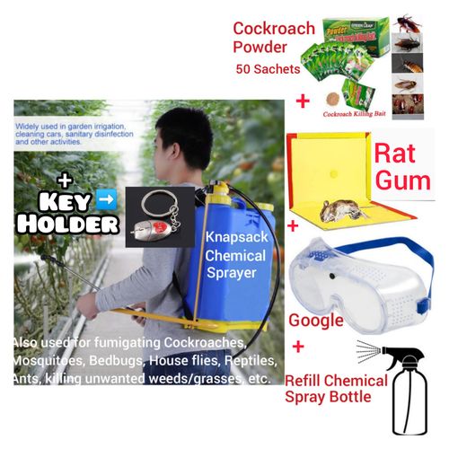 0 reviews for DIY - 16 Litres Knapsack Manual Chemical Sprinkler Fumigation Agriculture Gardening Farming Implement Tool Insecticide Pesticide Herbicide Fertilizer Sprayer Machine + Rat Gum + Cockroach Bait + Protective Google + Spray Bottle