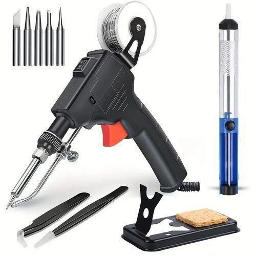 Pack:1 x automatic soldering iron gun2 x antistatic tip tweezers1 x desoldering pump1 x soldering wire1 x mini stand.