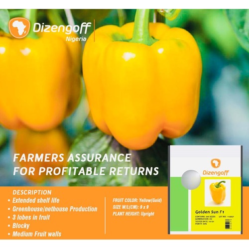 The Golden Sun (Yellow) Pepper seed | 500 seeds x 1 pack is a premium, high-performance variety known for its vibrant golden-yellow color, sweet flavor, and crisp texture. Ideal for both commercial farming and home gardening, this variety produces large, blocky fruits with thick, juicy walls that add color and flavor to any dish. Whether used fresh in salads, grilled, stuffed, or sautéed, Golden Sun peppers are a versatile kitchen staple.