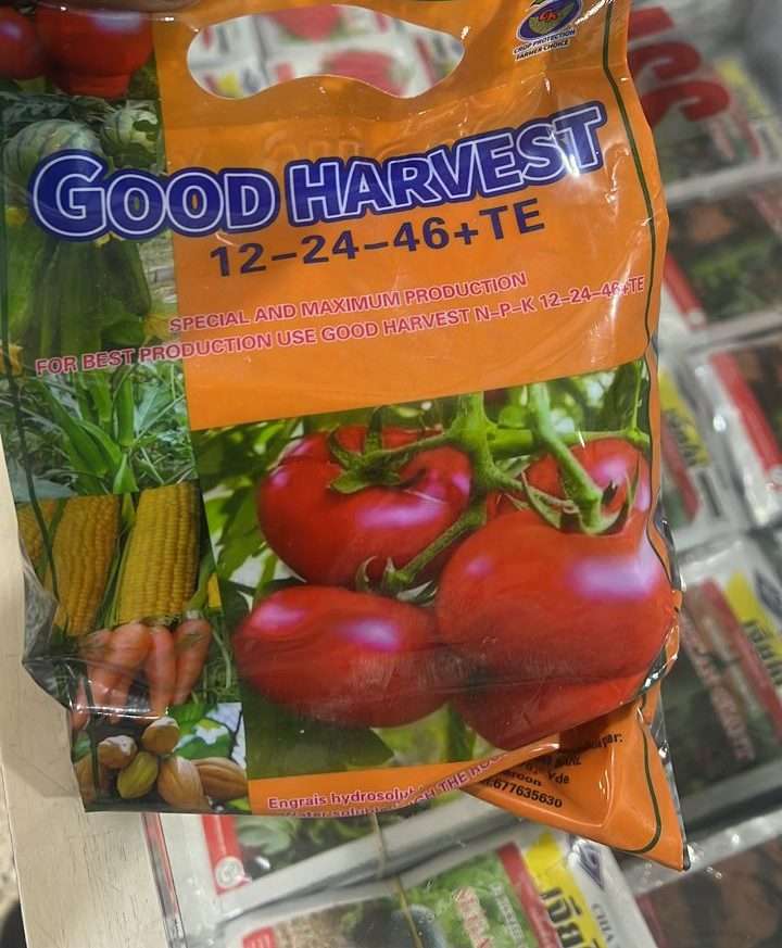Good Harvest Npk 12-24-46+TE (Fertilizer) is a high-quality nutrient solution designed to enhance the growth and productivity of your plants. Formulated with a balanced ratio of nitrogen (N), phosphorus (P), and potassium (K), along with essential trace elements (TE), this fertilizer provides comprehensive nutrition to your crops.