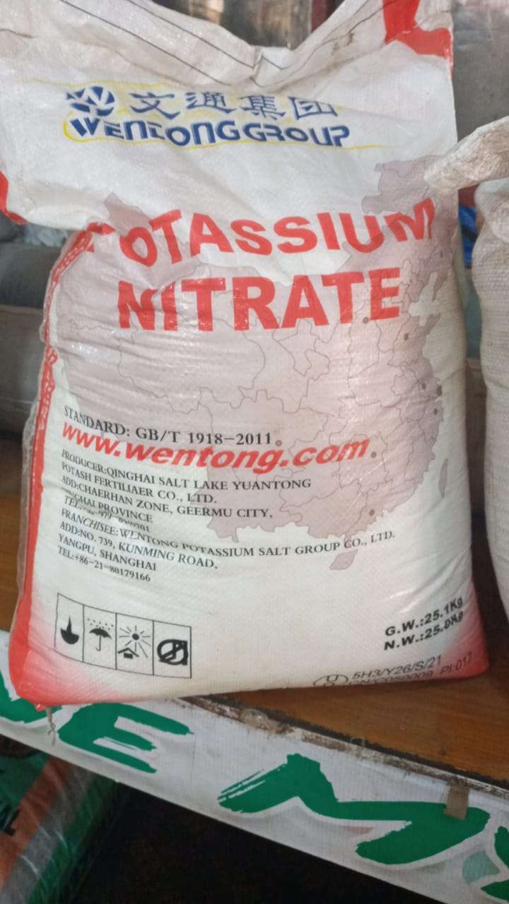 Wentong Potassium Nitrate (KNO₃) Fertilizer | 25kg is a high-purity, fully water-soluble fertilizer containing approximately 13% nitrogen (as nitrate) and 46% potassium oxide (K₂O), with no chloride, ideal for high-value crops and fertigation systems
