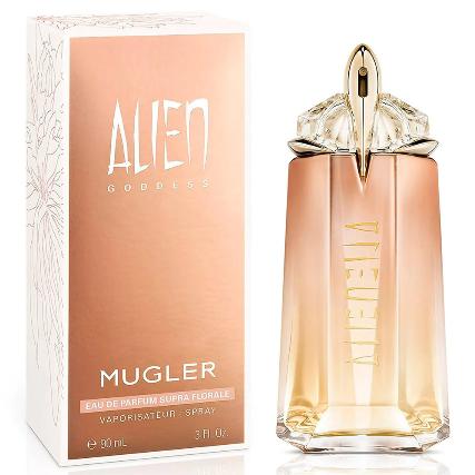 Now in 2023, Mugler Alien Goddess Eau De Parfum Supra Florale is being launched. This new flanker represents a celebration of mystical feminine sensuality, embodying both strength and a generous spirit. Its composition revolves around three supra flowers, harmoniously intertwining to unveil the fragrant future of floral scents.