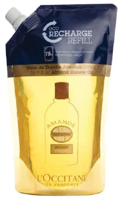 Eco-charging almond shower oil 500ml. Environmentally friendly recharging Almond Shower Oil, respectful to your skin and the environment. This oil softens the skin thanks to the presence of sweet almond oil.