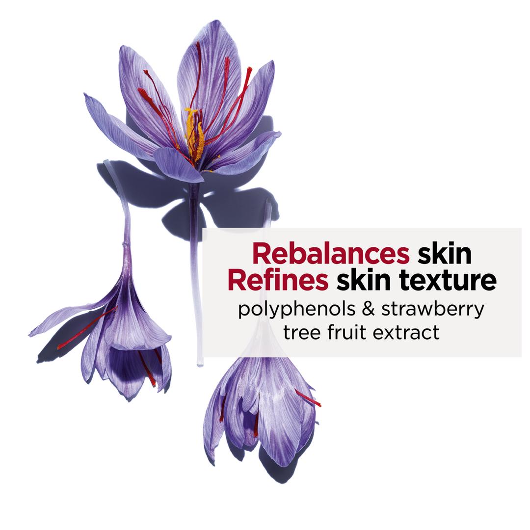 This bi-phase serum has a duo hydric and lipidic texture that provides intense hydration. At the heart of its formula is the [HYALURONIC POWER COMPLEX +], a duo of hyaluronic acids with organic leaf of life extract, which provides continuous, multi-level and long-lasting hydration. The organic leaf of life extract+ hyaluronic acid help to intensely hydrate and plump the skin. Acetylated hyaluronic acid, the formula’s standout ingredient, provides intense hydration. The formula is also enriched with saffron flower polyphenols to help balance the microbiota and organic strawberry tree extract to regulate sebum. It helps refine skin texture and tighten pores. It balances the skin* and improves its quality. Skin radiates with beauty after each use. The silky and non-greasy formula absorbs easily and nourishes the skin. For all skin types. *Clinical study on transepidermal water loss.