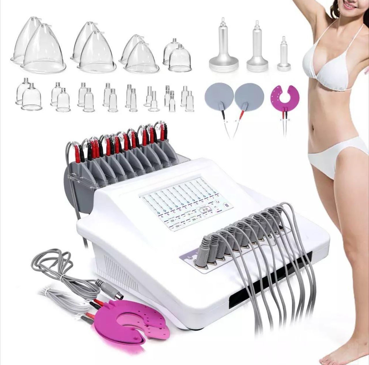 The Multifunctional EMS and Vacuum Cupping Therapy is a complete equipment that tones, lifts, and refines muscles for a slimmer and a more firm look. It contracts and relaxes muscles in intervals, which tones muscles to a threshold that will not cause undesired muscle mass gain. In addition, it stimulates collagen and elastin production, which are structural proteins for a healthy skin.
