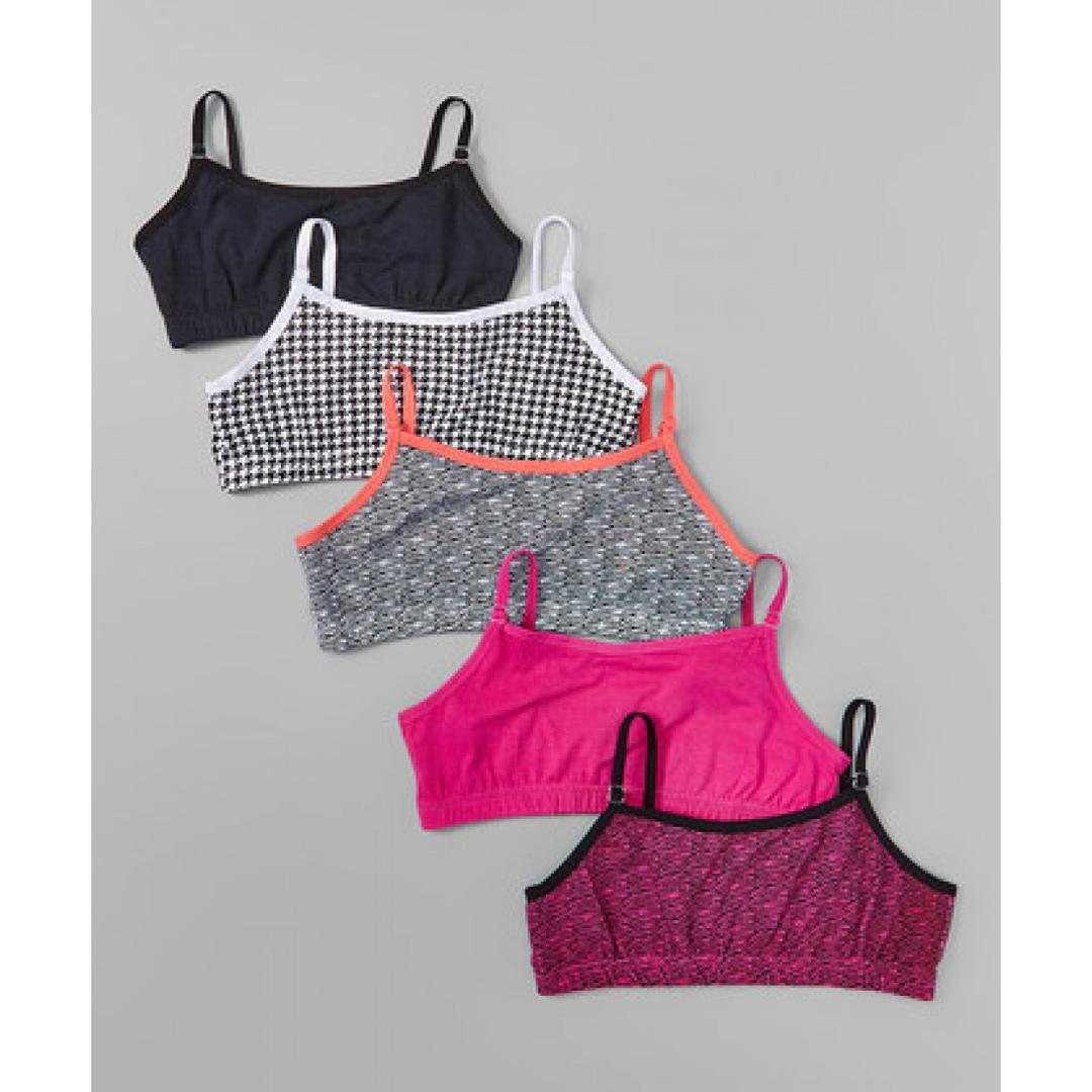 Call it bra top, crop bra or bralette; it is a a must have for every girl's closet. The 5pk count makes it stress free for every parent; no laundry within the week! 100% cotton, comfortable elastic band, adjustable shoulder strap and gorgeous color selection are perks of this item. Each pack comes on a hanger and it is an assortment of mix of colours in displayed pictures. Whatever mix you get, you will love the combination.