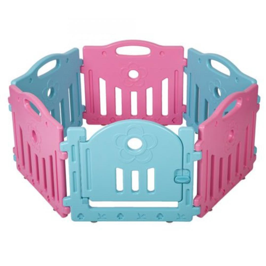 This playpen is equipped with a hinged safety lock door for your child's protection.