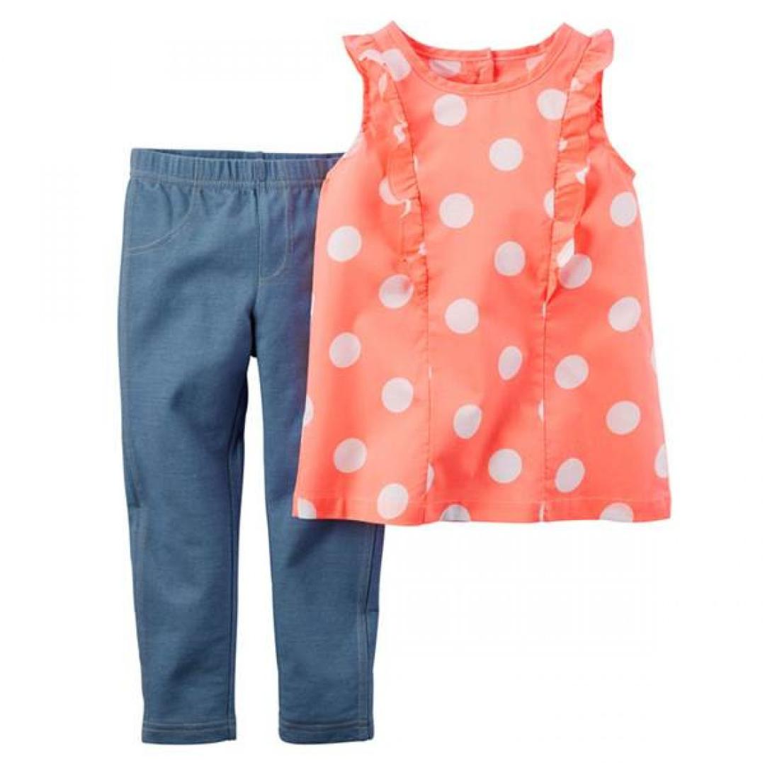 Let your little one will bask in style with these Carter's Toddler Girl's Orange & Blue 2-Piece Top & Jeggings Set. It is designed with allover prints that add the cute factor to your kid's wardrobe. This Carter's Toddler Girl's Orange & Blue 2-Piece Top & Jeggings Set features a no-pinch elastic waistband for a comfy fit.