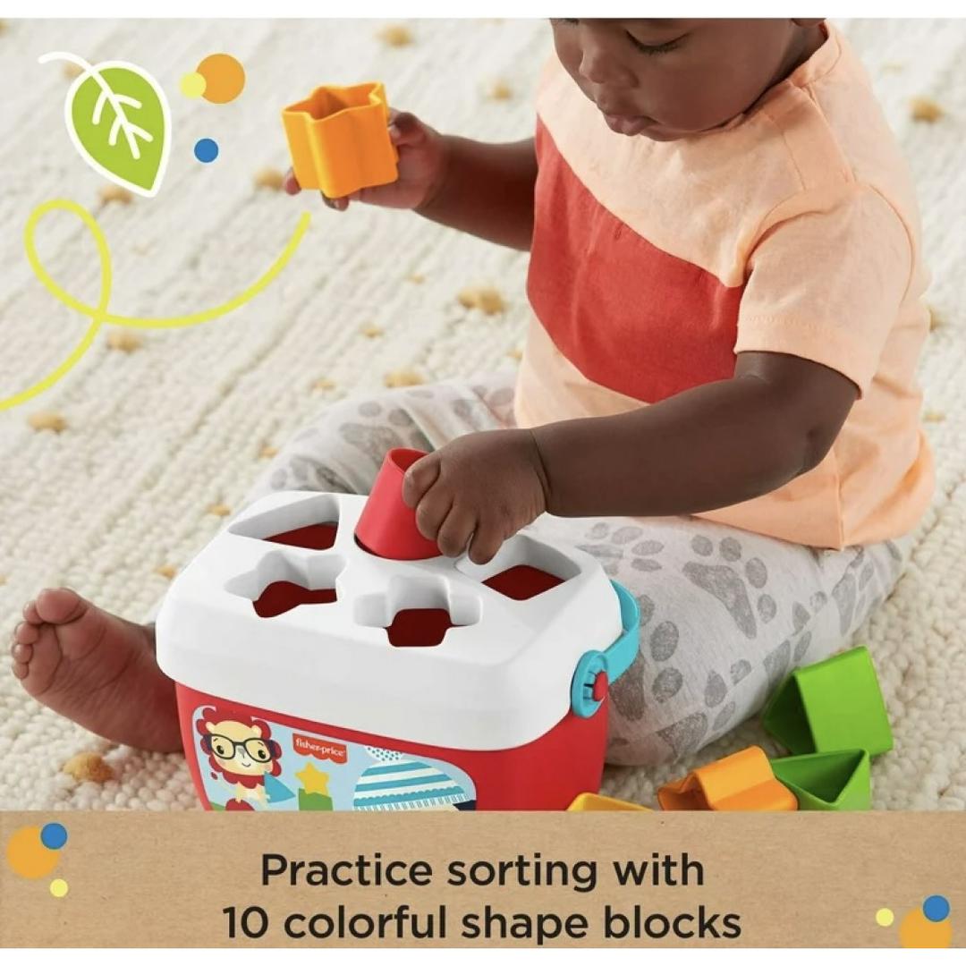 •Baby’s First Blocks offers classic sorting and put-and-take play with 10 colorful blocks and a storage bucket