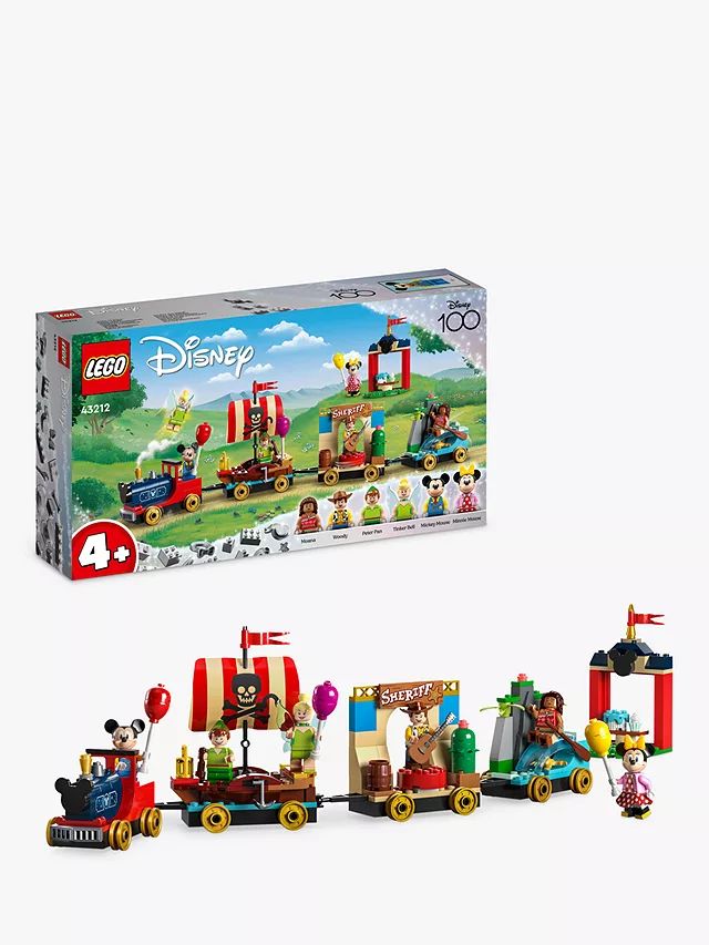 LEGO Disney 100 Celebration Train Building Toy 43212 Imaginative Play, 6 Disney Minifigures: Moana, Woody, Peter Pan, Tinker Bell, Mickey & Minnie Mouse.