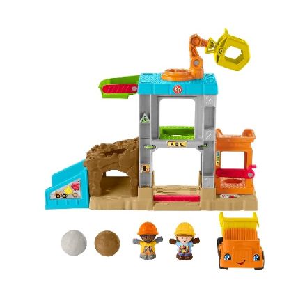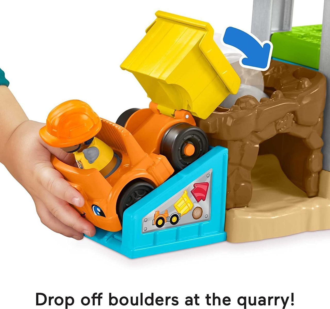 Comes with 1 push-along dump truck, 2 construction worker figures, and 2 boulders