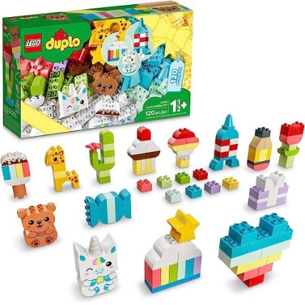 Kids combine the colorful assortment of toddler-friendly building bricks to create familiar objects – such as a rocket, heart, star, cake, unicorn, giraffe and a bear – and enjoy endless free-building fun. With colorful shapes and many models to make, this engaging playset effortlessly blends skill-building discovery with joyful, open-ended play.