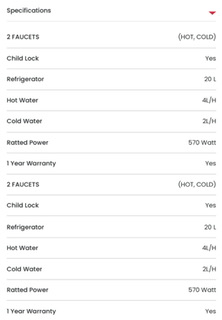 -High efficiency Compressor cooling -High power stainless steel hot water tank -Child safety lock for hot water -Double safety device for preventing overheat
