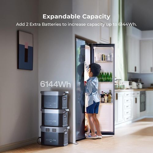Expandable capacity: 2-6kWh expandable capacity to fit your energy storage needs. Add up to two DELTA 2 Max Smart Extra Batteries to hit 6144Wh. Ideal for home backup, caravanning, outdoors or even everyday use.