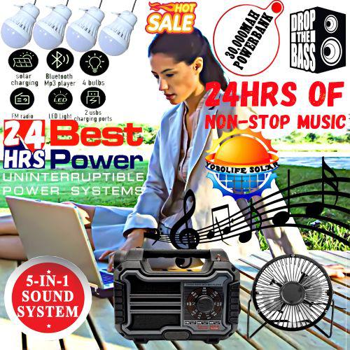 Solar lighting Kit with Bluetooth Speaker is a portable solar lighting energy device. The device when fully charged can be used to power 3 bulbs and also charge your phone. It is made up of the device with inbuilt Solar Panel, three bulbs and usb cables for charging different phone types. The Solar lighting Kit with Bluetooth Speaker is potable and can be carried when traveling long journeys. It may take longer time to charge when the sunlight is not so bright. It is suitable for indoor use.. It is recharged automatically by sunshine and Ac power for night use.Works for long hours when fully charged.It is small portable smart and bright. It save you cost and can light up an entire room. Ensure that the device is fully charged before your first use. If the light blinks, it means the power is very low and you have to recharge it. It may take a long time to fully charge the device without bright sunlight.It is suitable for both homes, offices, hotels, restaurants, clubs and every area where bright indoor light is required. This device works well.Note: The Free Fan Can Differ in Color.