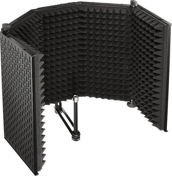 huge advantage of our microphone isolation shield with stand is its foldable design. You won't need to carry around bulky equipment and can still benefit from the best recording quality. The mic shield set fits in any backpack!