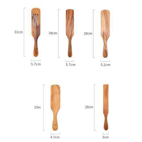 Reliable materials: Wooden kitchen utensils are made of natural teak, safe and reliable materials, and exquisite craftsmanship make them strong and durable; they can be washed in a dishwasher, and can be easily cleaned with tap water and neutral detergent, saving you a lot of time and energy.