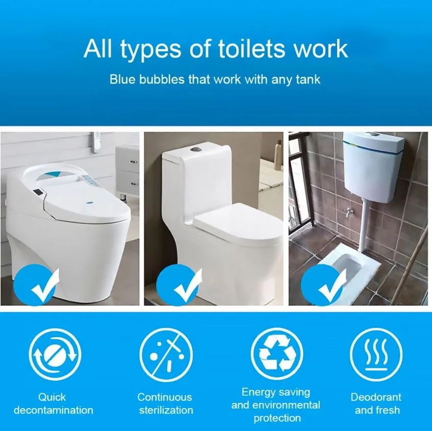 Blue Bubble Cleaning Antibacterial toilet bowl wiper removes all residues. It has an Excellent Cleaning Ability; it can clean the dirty both of the tank, rim, inner wall, sewer pipe and other parts of the toilet thoroughly.