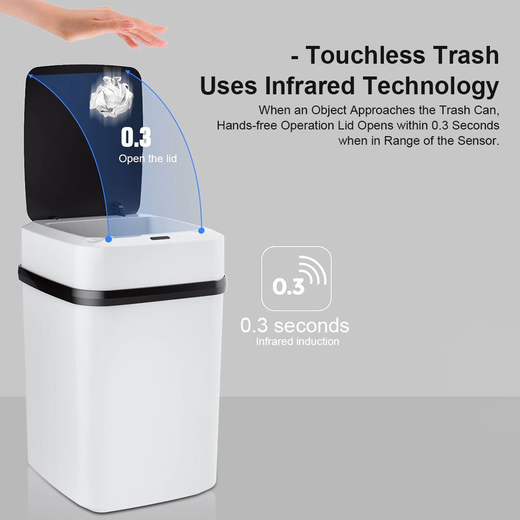 - lid: You can wave your hands on the lid to open the waste bin, and the 0.3s speed ensures a good performance, it seals the smell effectively.