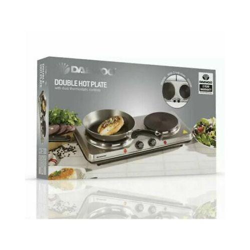 1 x Daewoo Double Electric Hot Plate Stainless Steel Compact & Portable 2500W Silver